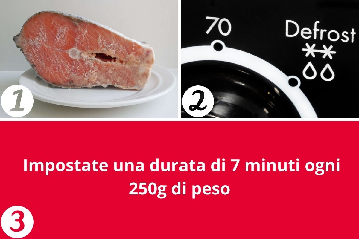 Altre due opzioni per scongelare gli alimenti sono quella di farlo nel forno a microonde o a bagnomaria. Se possedete il forno a microonde basta inserire il cibo ancora congelato e attivare per qualche minuto l’azione apposita “defrost“, di scongelamento.